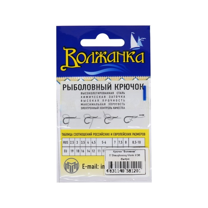 Крючки "Волжанка", серия O`Shaughnessy Worm, № 3/0, 5 шт.