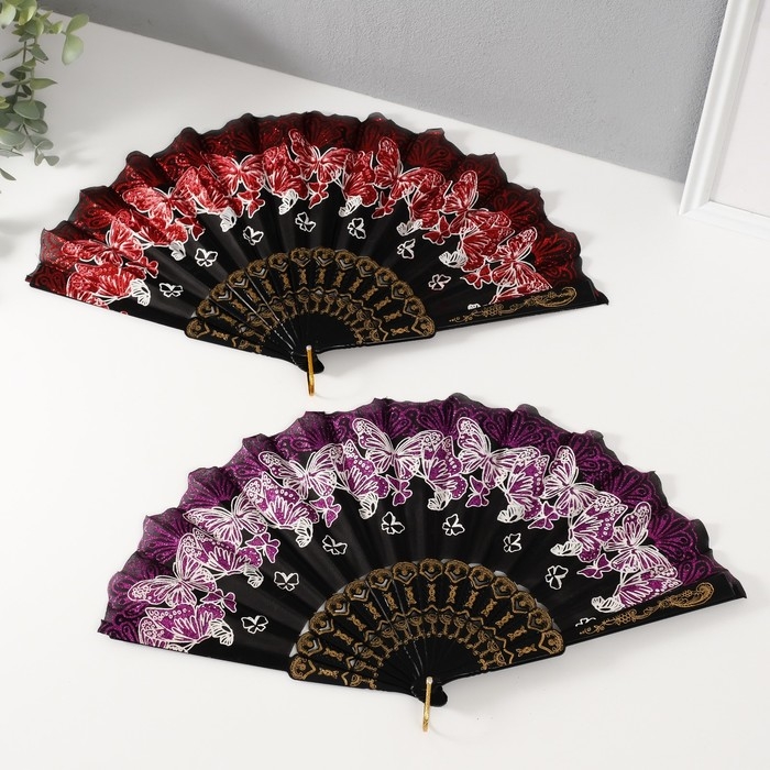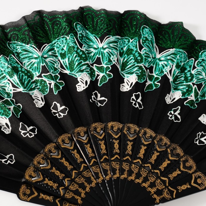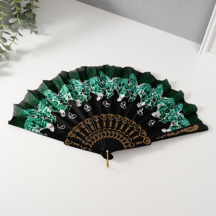 Веер пластик, текстиль "Золотые узоры" блёстки МИКС 22,5 см