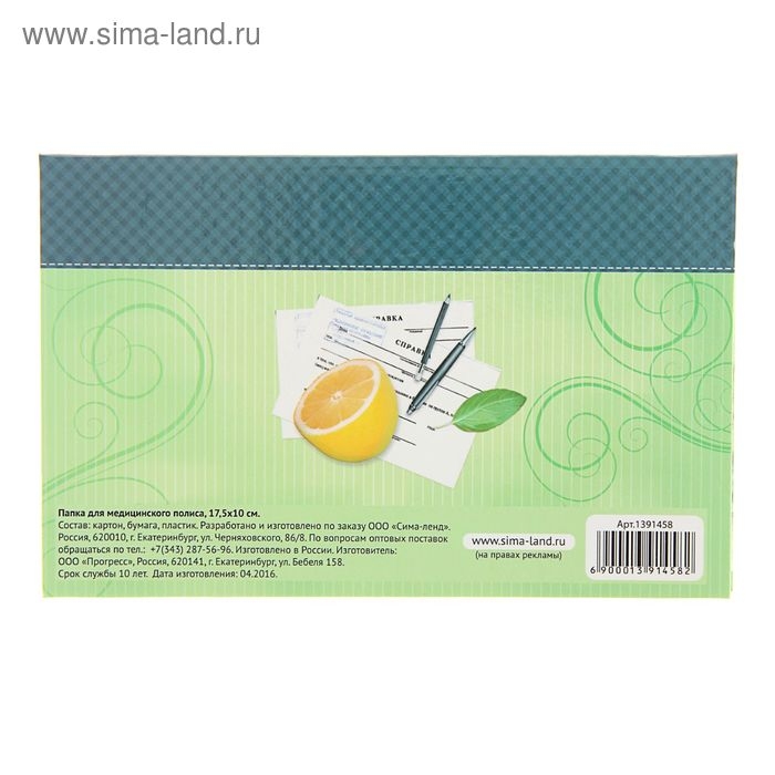 Папка для медицинского полиса "Авокадо", 17,5 х 11,3 см