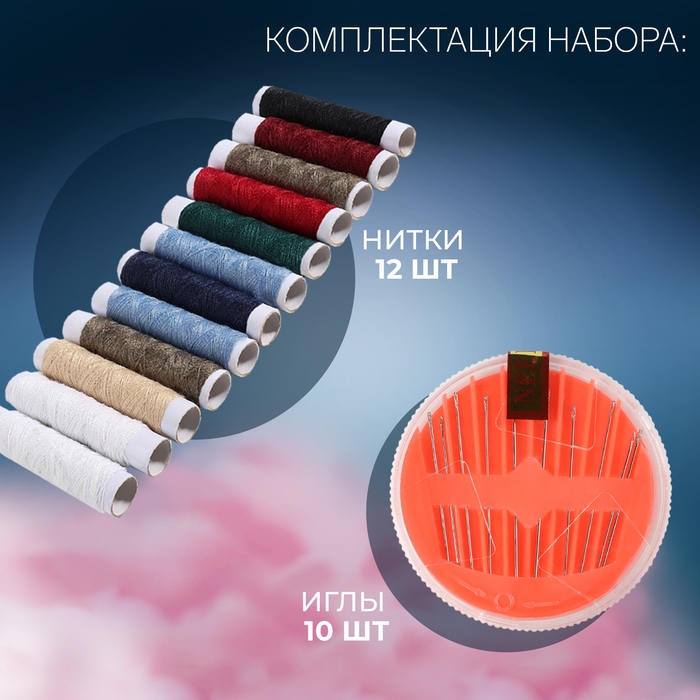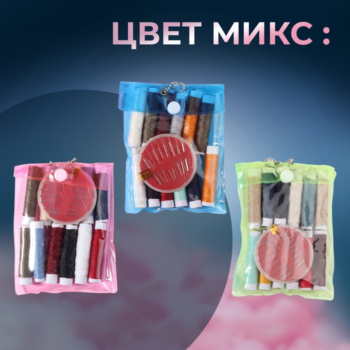 Швейный набор, 21 предмет, в блистере, цвет МИКС
