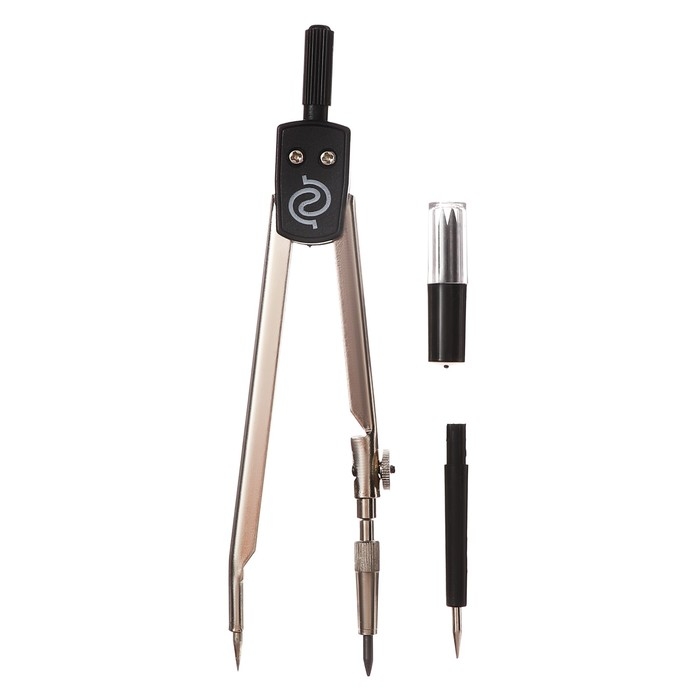 Циркуль металлический в пластиковом пенале, с запасными грифелями