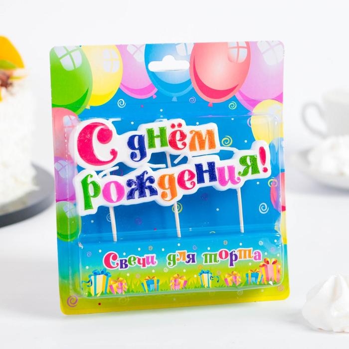 Свеча для торта надпись "С Днём Рождения" на шпажках, 10 см,