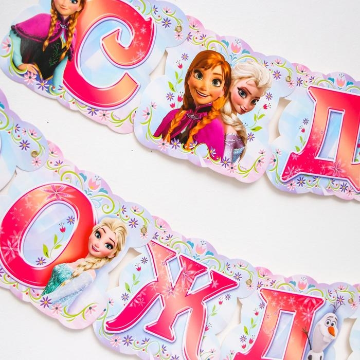 Гирлянда на люверсах "С Днем Рождения!", длина 185 см, Холодное Сердце