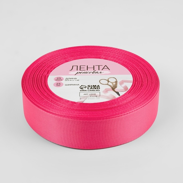 Лента репсовая, 25 мм, 23 ± 1 м, цвет ярко-розовый №159