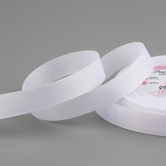 Лента репсовая, 15 мм, 23 ± 1 м, цвет белый №01