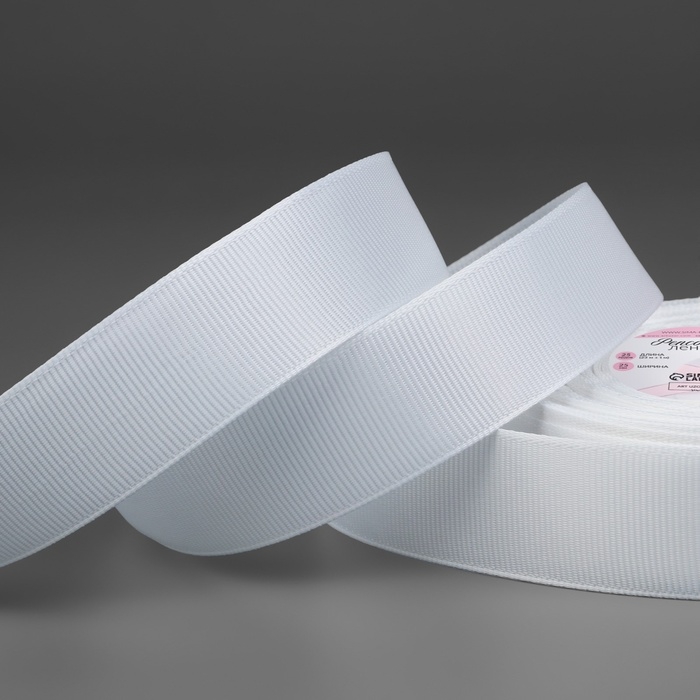 Лента репсовая, 25 мм, 23 ± 1 м, цвет белый №01