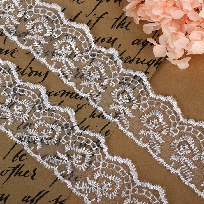 Кружево шитьё, 70 мм × 13 ± 1 м, цвет белый