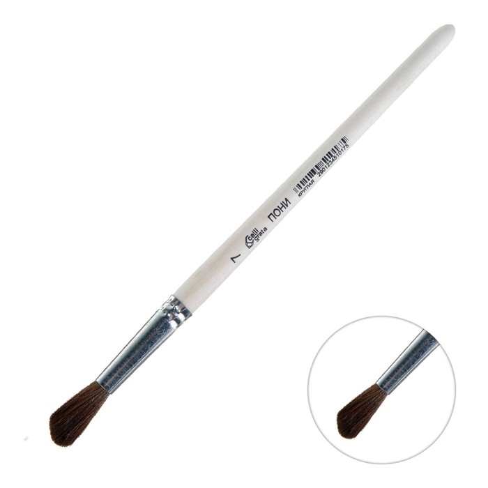 Кисть для рисования, Пони круглая № 7 (диаметр обоймы 7 мм; длина волоса 24 мм), деревянная ручка, Calligrata