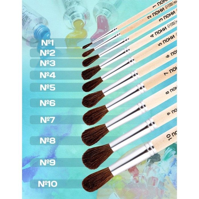 Кисти из волоса пони - это качественная альтернатива беличьим кистям. Ворс средней жёсткости, достаточно упругий и мягкий, подходит для работы с акварелью, гуашью и темперой. С помощью такой кисти легко накладывать мазки краски. Соотношение цены и качества сделало изделия из волоса пони одними из самых востребованных для детей школьного возраста. Ручка изготовлена из берёзы. Цельнометаллическая никелированная бесшовная обойма обеспечивает надёжное соединение ручки и волосяного пучка.