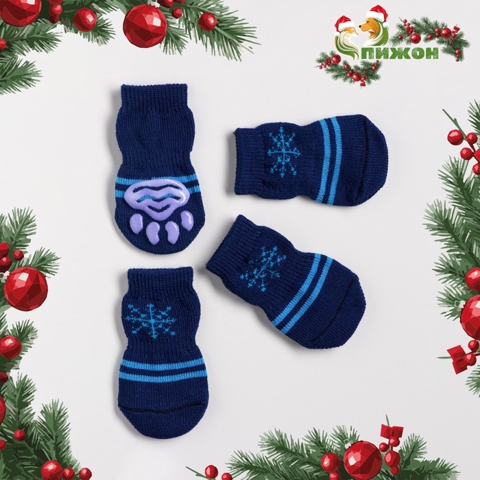 Носки нескользящие "Снежинка", размер М (3/4 * 7 см), набор 4 шт, тёмно-синие