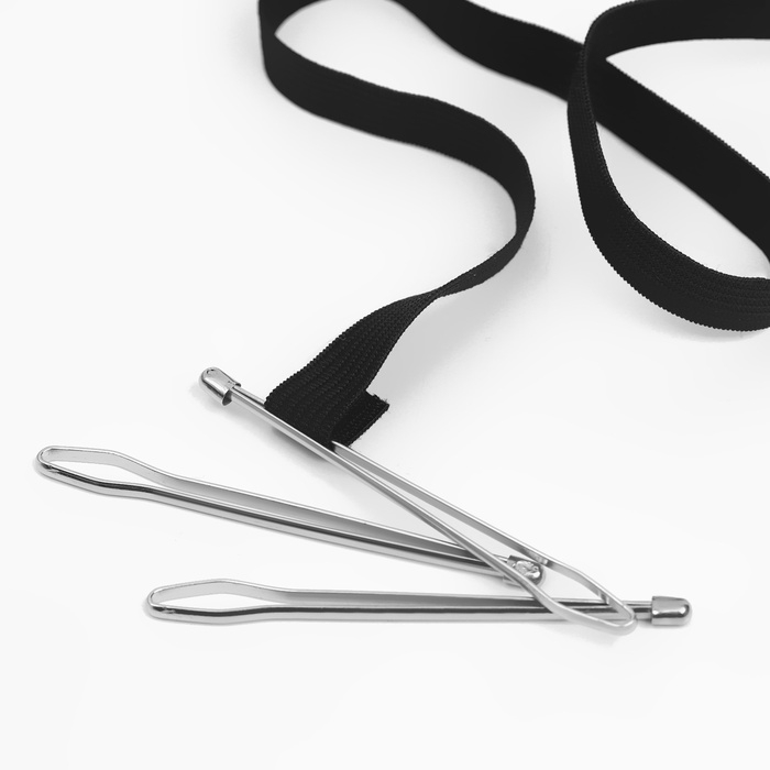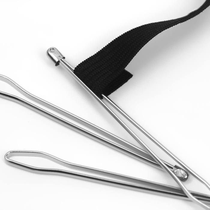 Чтобы продеть в изделие резинку, зажмите её конец между лапками, зафиксируйте с помощью узелка. Также может использоваться для тесьмы или шнура. Приспособление имеет гладкую поверхность и не повредит материал.