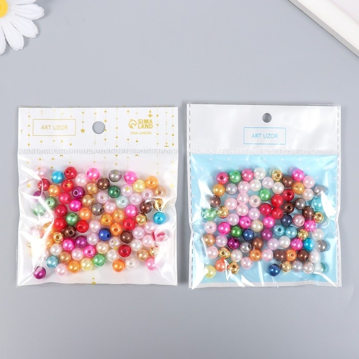 Бусины для творчества "Жемчуг цветной" набор d=0,8 см 20 гр