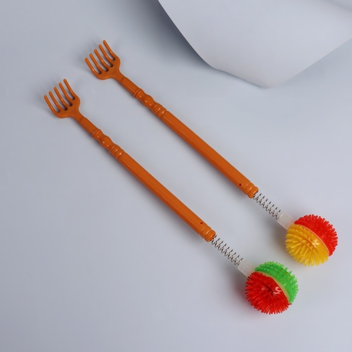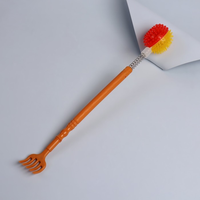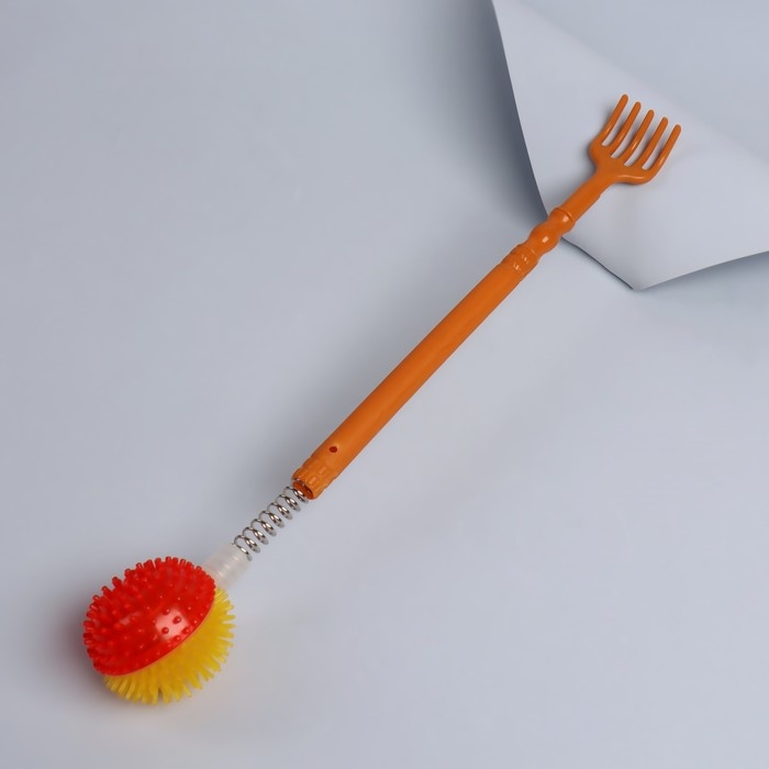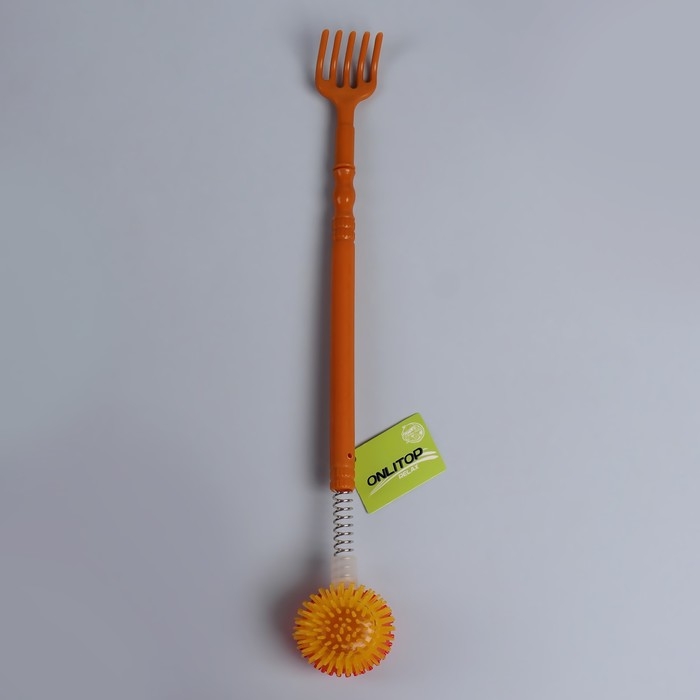 Двусторонний инструмент сделает массаж спины лёгким и приятным. Благодаря длинной ручке вы доберётесь до труднодоступных мест. Чесалка бережно снимет напряжение с мышц. Шарик на пружине предназначен для точечного поколачивающего массажа.