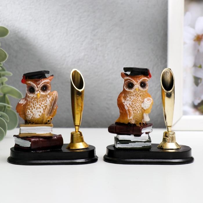 Сувенир полистоун с подставкой под ручку "Профессор филин на книгах" МИКС 7,5х6,5х4,2 см