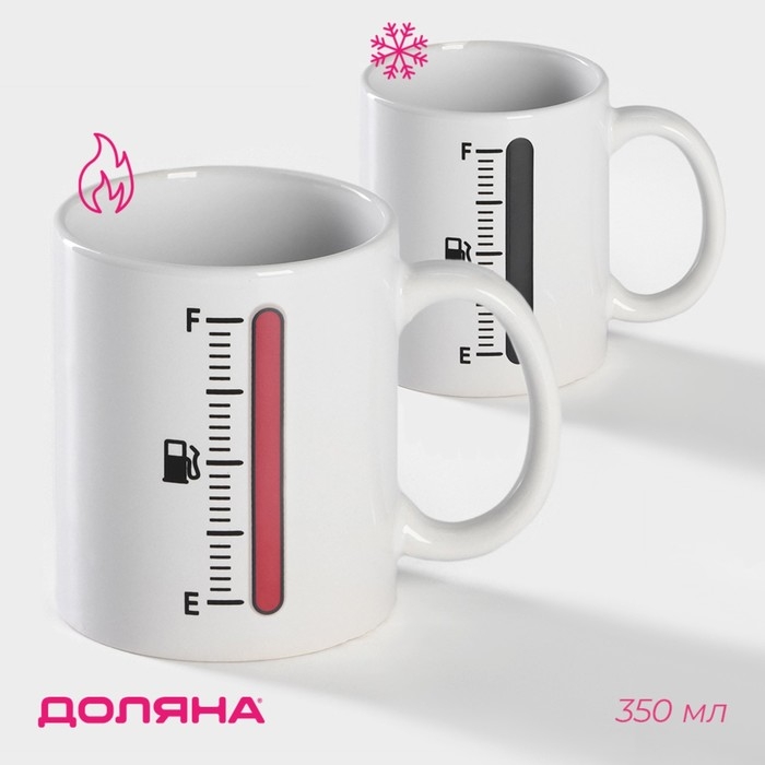 Кружка - хамелеон керамическая Доляна «Уровень топлива», 350 мл, цвет белый