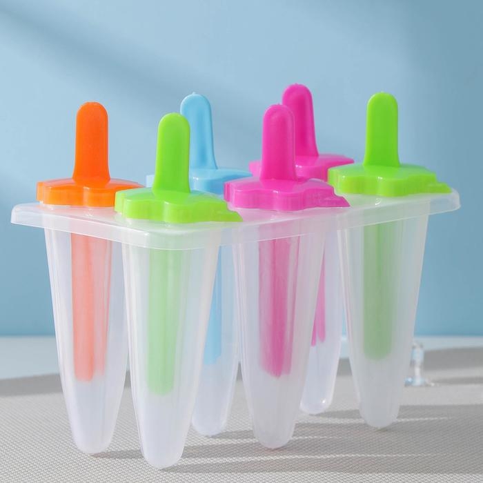 Форма для мороженого Доляна «Моника», силикон, 19,5×11 см, 4 ячейки (6,7×3,2 см), цвет МИКС