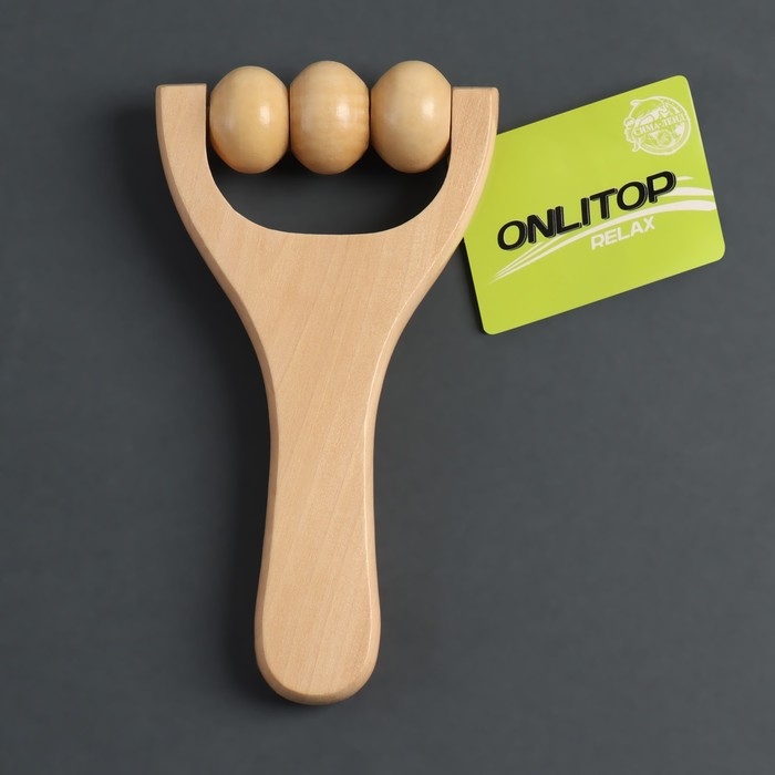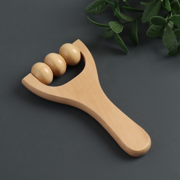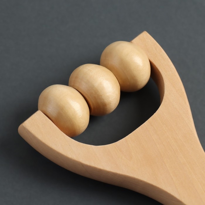 Массажёр «Барабан», деревянный, 15 × 8 × 3 см, 3 шарика
