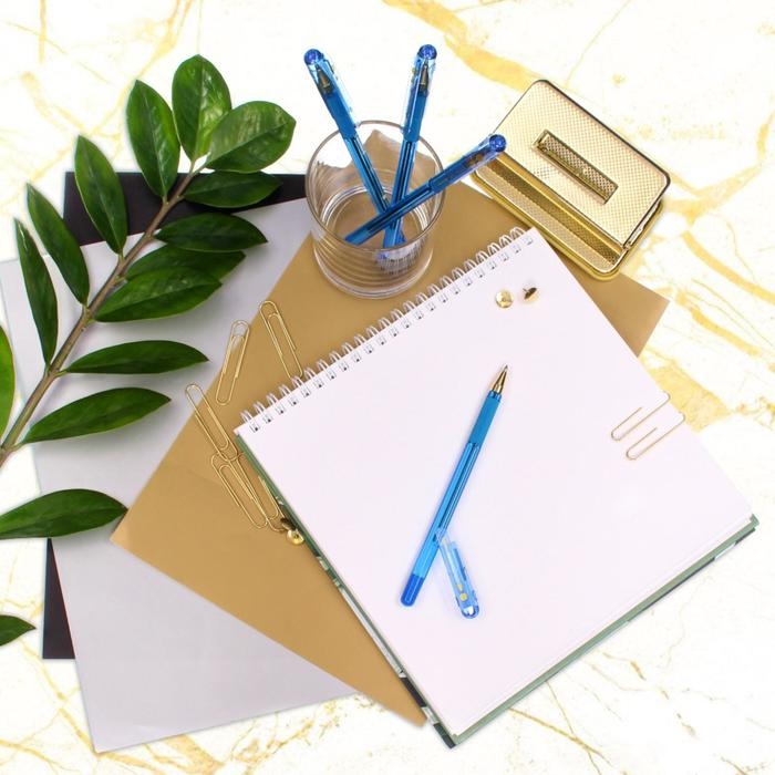 Ручка шариковая автоматическая FIORE, узел 0.7 мм, чернила синие, резиновый держатель, длина линии письма 1000 метров, МИКС