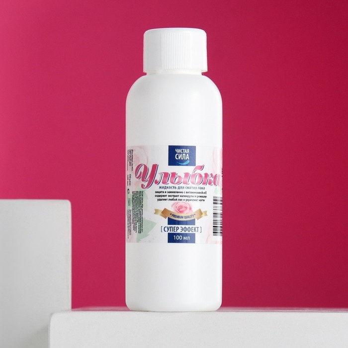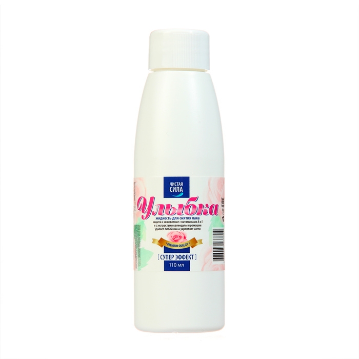 Жидкость для снятия лака "Улыбка" обладает эффективной формулой. В составе имеет ацетон.