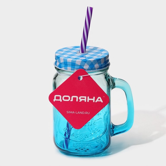 Кружка стеклянная с крышкой и трубочкой Доляна «Галерея», 500 мл, 11×8×13,5 см, цвет МИКС