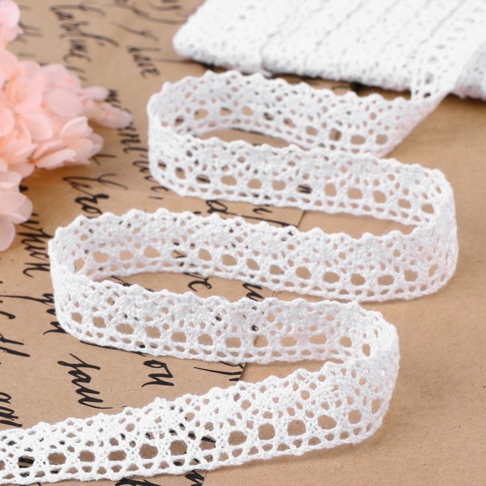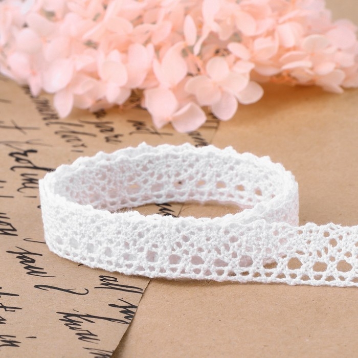 Кружево вязаное, 15 мм × 15 ± 1 м, цвет белый