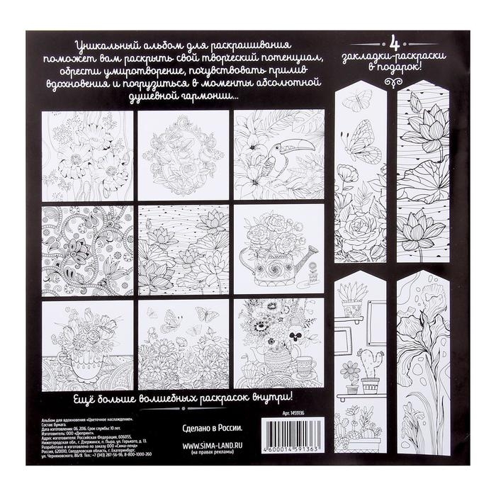 Раскраска - антистресс, альбом «Цветочное наслаждение» 20 стр.