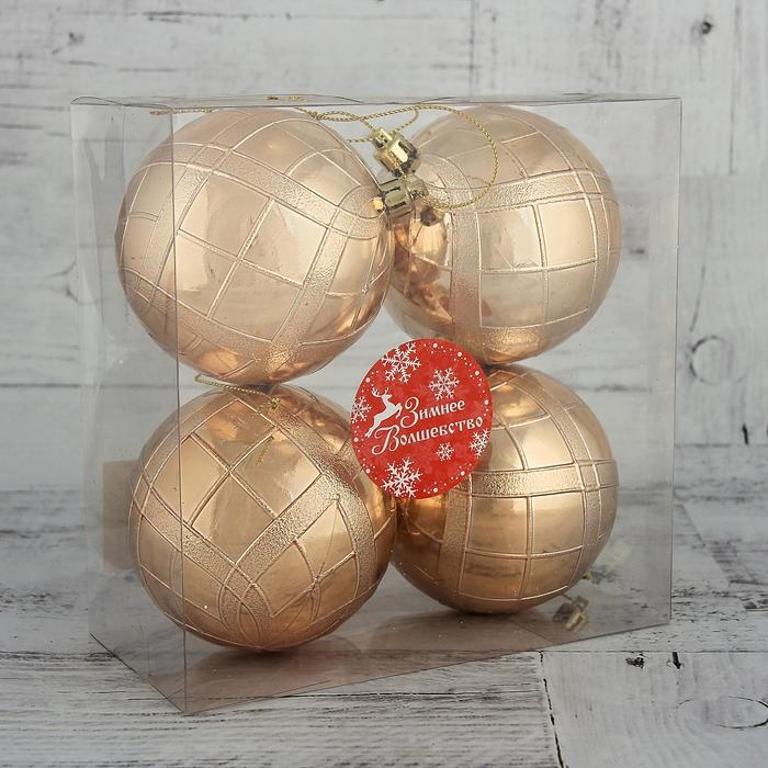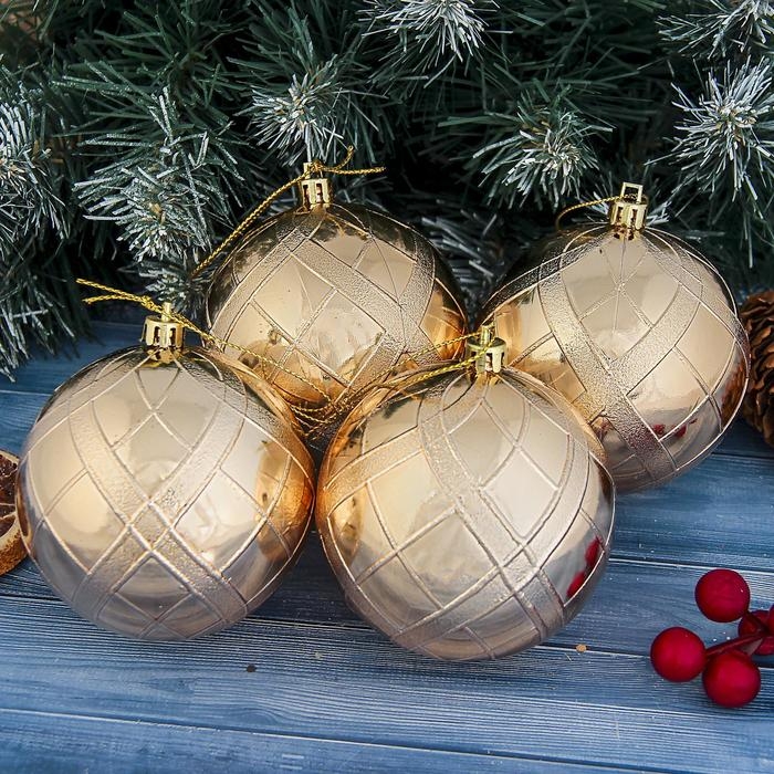 Набор шаров пластик d-8 см, 4 шт "Переплёт" золото