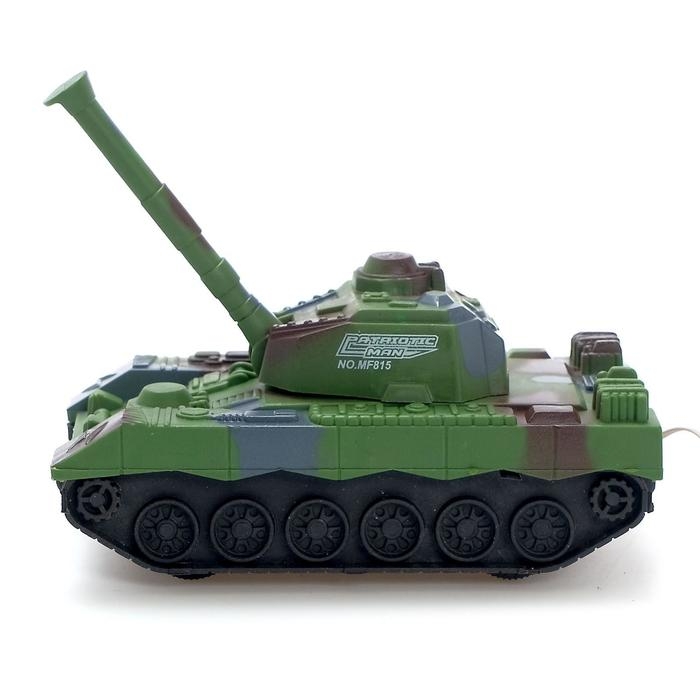 С удобным дистанционным управлением справится даже начинающий танкист, две кнопки будут направлять движение боевой машины вперёд и назад. Ребёнок будет в восторге.