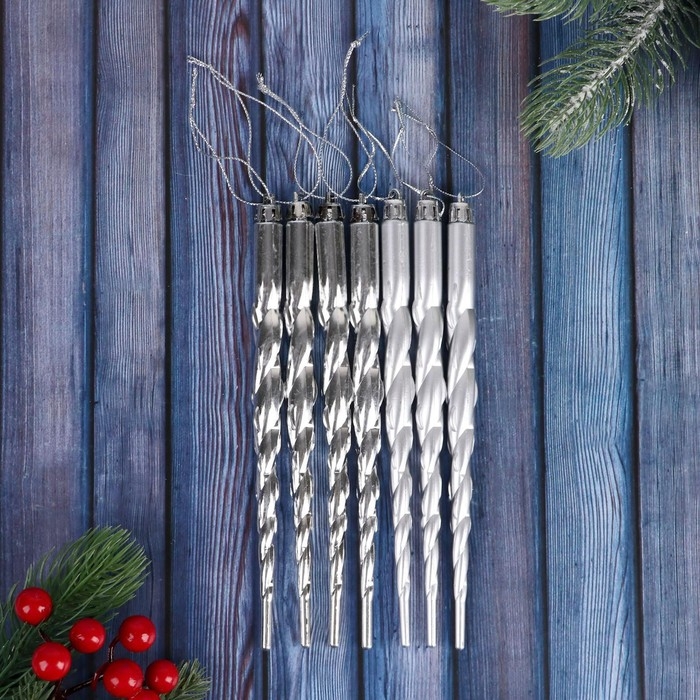 Украшение ёлочное "Сосулька - завитулька" (набор 7 шт) 19 см, серебро