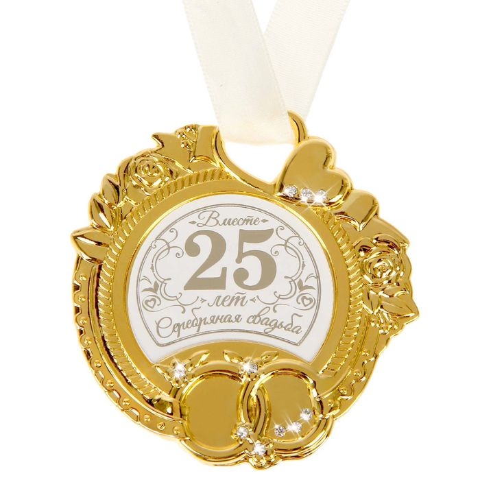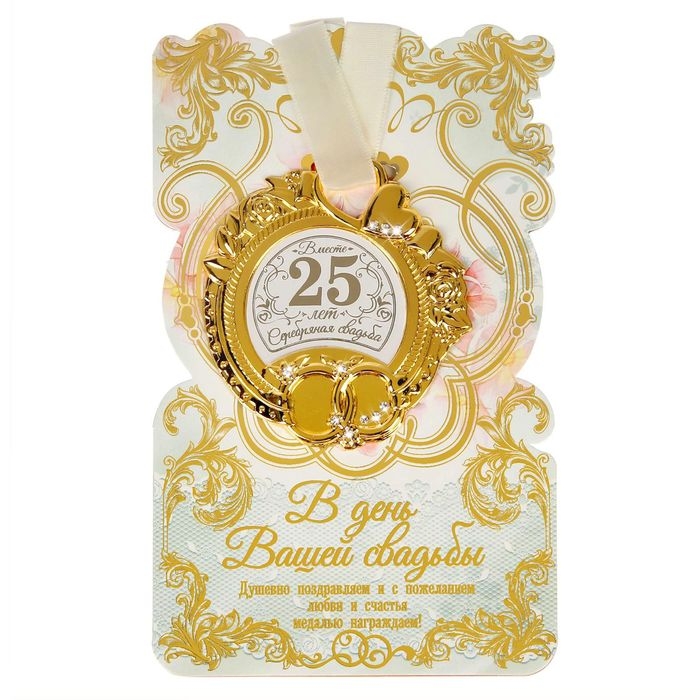 Медаль свадебная на открытке «Серебряная свадьба», 8,5 х 8 см