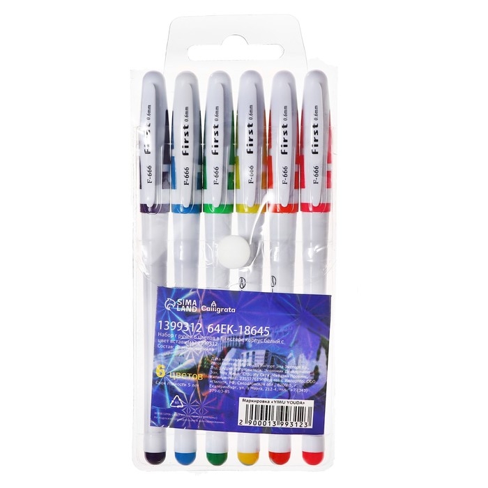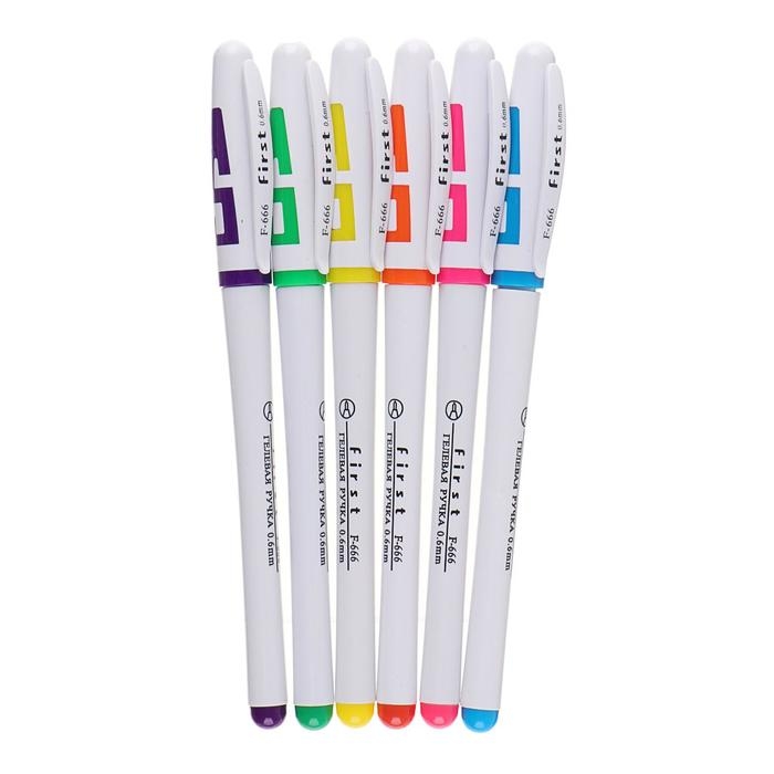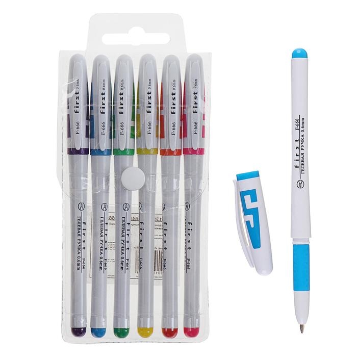 Набор гелевых ручек, 6 цветов, корпус цветной с белыми вставками, в блистере