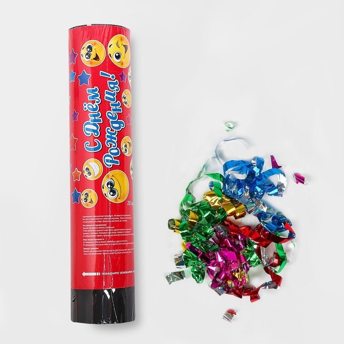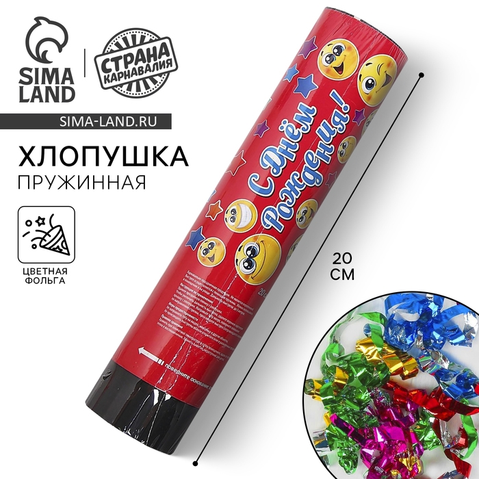 Хлопушка пружинная «С днём рождения», смайлики, конфетти, фольга, серпантин, 20 см