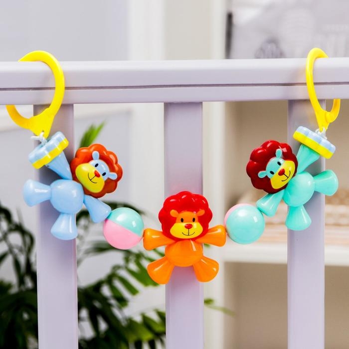 Растяжка на коляску/кроватку «Львята», 3 игрушки с погремушками, цвет МИКС, Крошка Я