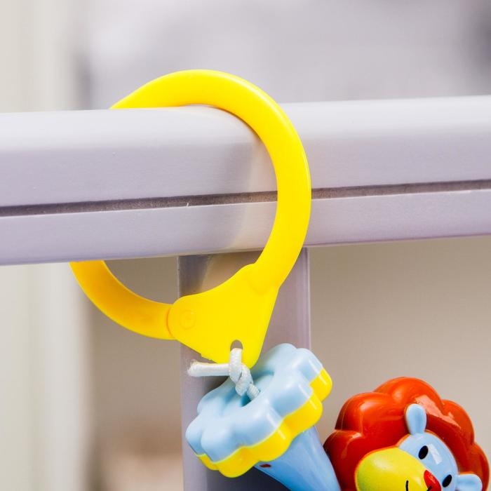 Яркая погремушка-растяжка оснащена удобными креплениями, которые подойдут практически для любого типа коляски, кроватки и даже автокресла.
