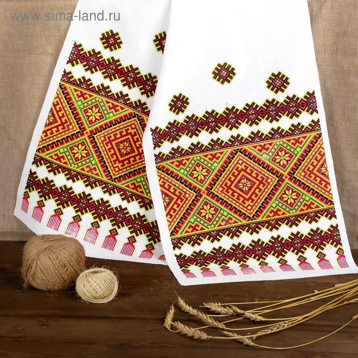 Рушник под ноги. Кто первым из молодых на него встанет — тому и быть хозяином в доме. Лучше отказаться от вариантов, на которых изображена пара голубей или лебедей, а также кольца. Считается, что супруги могут затоптать своё счастье. Лучше отдать предпочтение геометрическим или растительным узорам.
