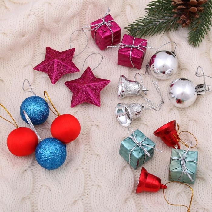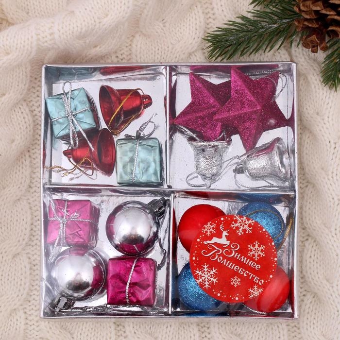 Набор украшений пластик 16 шт "Карнавал" (6 шаров, 4 подарка, 2 звезды, 4 колокольчика)