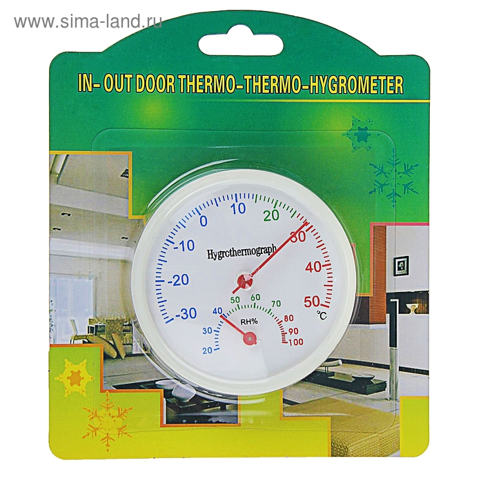 Термометр уличный, гигрометр, d=6.5 cм, белый