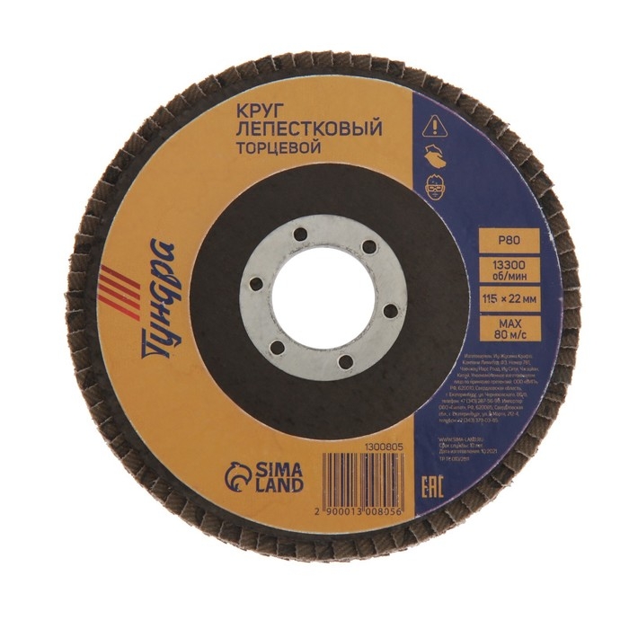 Круг лепестковый торцевой ТУНДРА, 115 х 22 мм, Р80