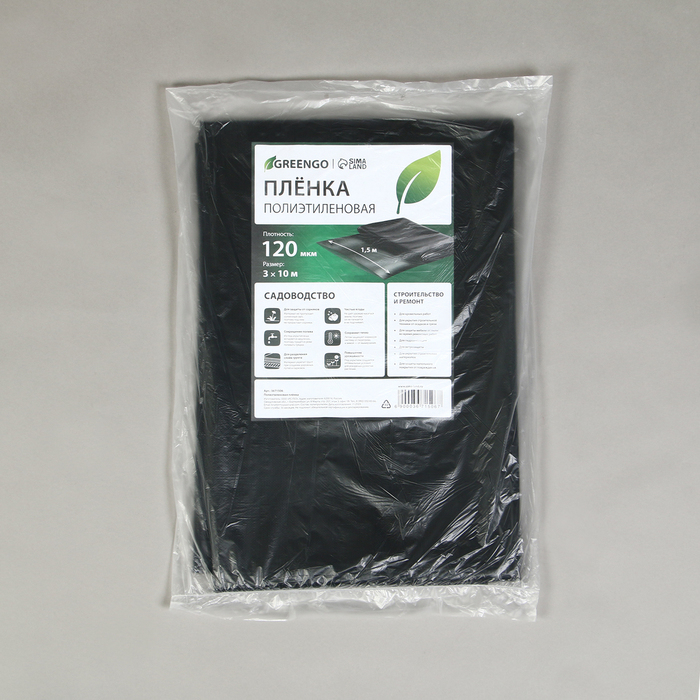 Плёнка из полиэтилена, техническая, толщина 120 мкм, чёрная, 10 х 3 м, рукав (1.5 м × 2), Эконом 50%, для дома и сада, Greengo