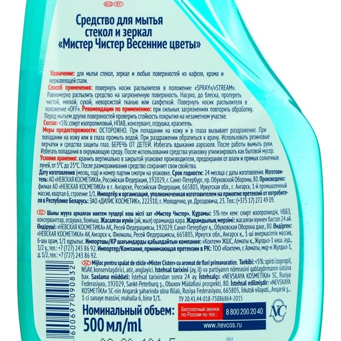 Средство для мытья стекол и зеркал Мистер Чистер «Весенние цветы», 500 мл
