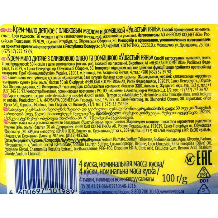 Детское крем-мыло Ушастый нянь, с оливковым маслом и ромашкой, 4х100 г