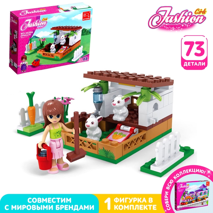 С набором торговой марки Ausini малышка создаст собственную мини-ферму, где вместе с игрушечной подружкой будет выращивать овощи и заботиться о кроликах. Из 73 деталей девочка соберёт огород с загоном для животных. Разнообразные предметы расширят игровые возможности: с помощью ведра и щётки юная леди очистит вольер, в кормушку положит кроличье лакомство, территорию украсит цветами и огородит заборчиком.