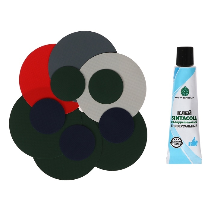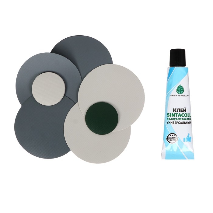 В комплект входят 12 шайб диаметром 4 и 8 см (по 6 штук каждого размера) и тюбик клея Kleyberg для ПВХ. Устойчивый к воздействию воды, масла, бензина и ультрафиолета этот клей выручит вас в критический момент, но полностью высохнет лишь через 12 часов. Поэтому, вернувшись домой, не поленитесь переделать заплатку (для вашего же спокойствия и безопасности).