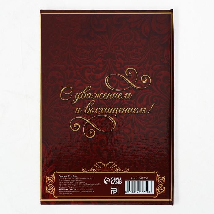 На любом торжестве есть место как серьёзным и официальным поздравлениям, так и весёлым шуткам! Традиционный формат, интересная обложка и позитивное содержание этого диплома украсят ваше мероприятие и позволят посмеяться от души.