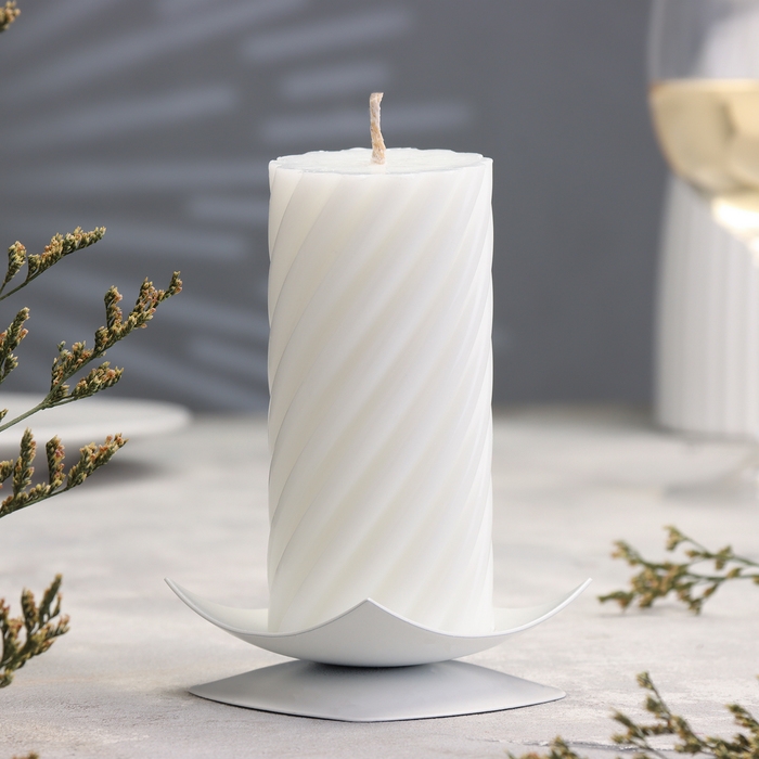 Подсвечник "Кварта" металл на 1 свечу, 7х2,7 см, белый