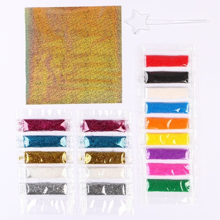 Фреска из песка — увлекательный вид творчества, который понравится любому малышу. Ведь раскрашивать любимых героев с помощью цветных песчинок так здорово! Засыпайте картинку постепенно и не забывайте равномерно распределять мелкие блёстки по клеевому слою, чтобы картина сияла. Или засыпьте только некоторые части фрески, придав картинке фактуру. Специальные контуры не дадут разноцветным частичкам перемешаться и помогут создать сверкающий шедевр. Клеевая основа защищена специальным слоем бумаги с прорезями. Отделяйте верхний цветной слой с помощью стеки и засыпайте песком подходящего оттенка.