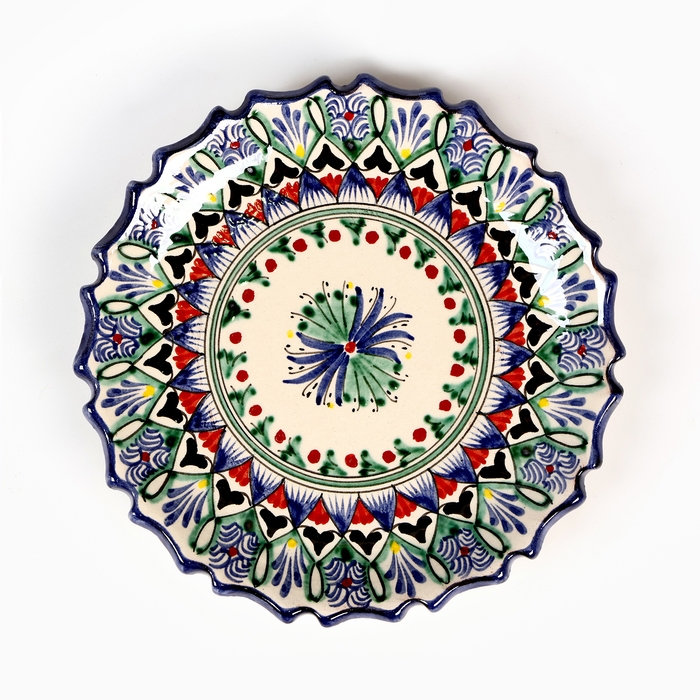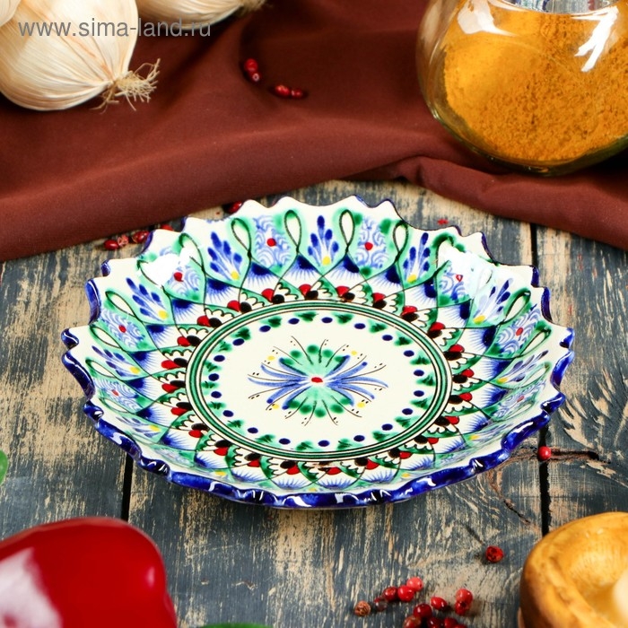 Тарелка Риштанская Керамика "Узоры", 27 см, синяя микс