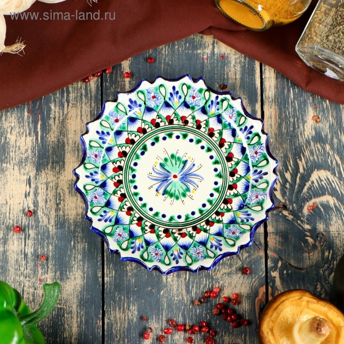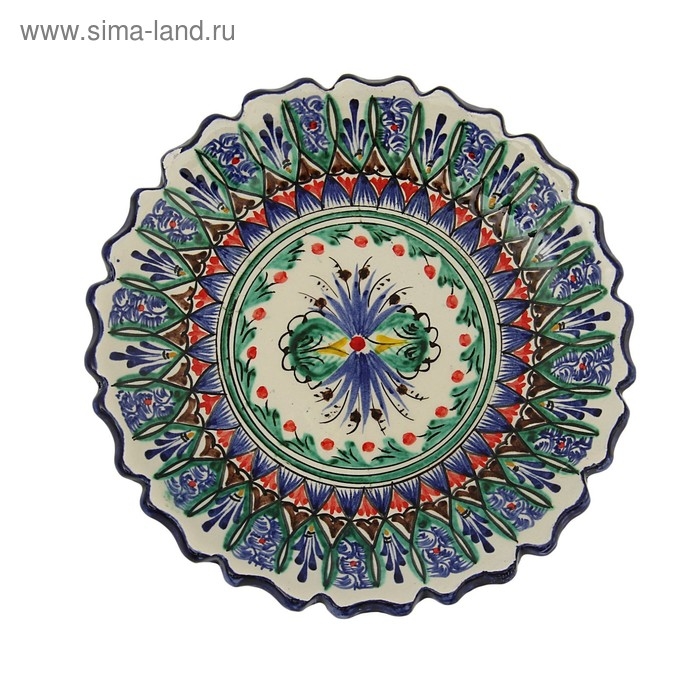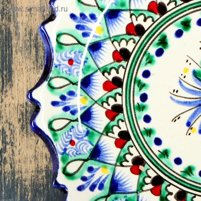 Тарелка Риштанская Керамика "Цветы", синяя, рельефная, 27см
