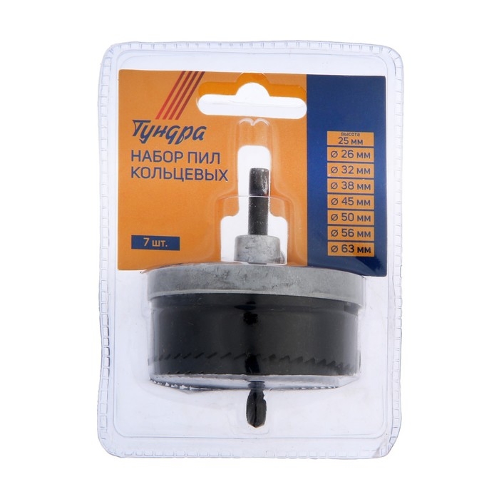 Набор пил кольцевых ТУНДРА, высота 25 мм (1"), 26-32-38-45-50-56-63 мм, 7 шт.