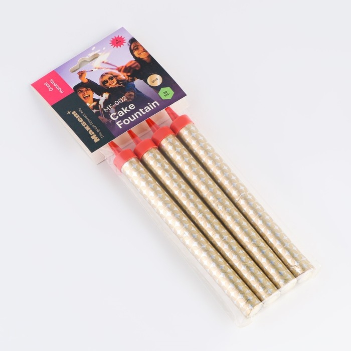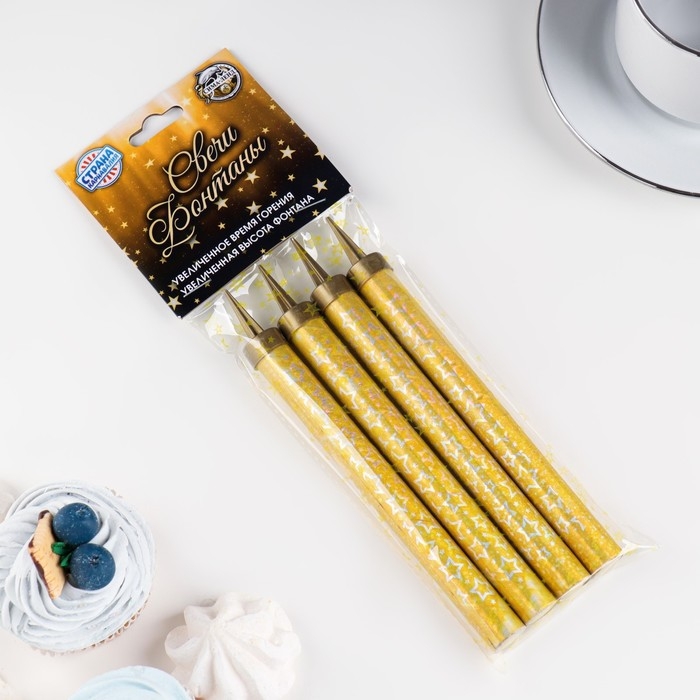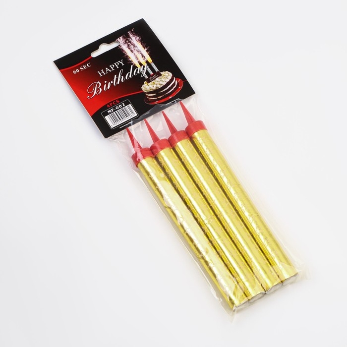 Свечи фонтаны для торта "Золотые искры", 17,5 см, 60 секунд, 4 шт
